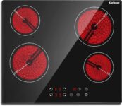 Made with durable ceramic glass that is scratch-resistant, heat-resistant, and designed to fit compactly into kitchen countertops.